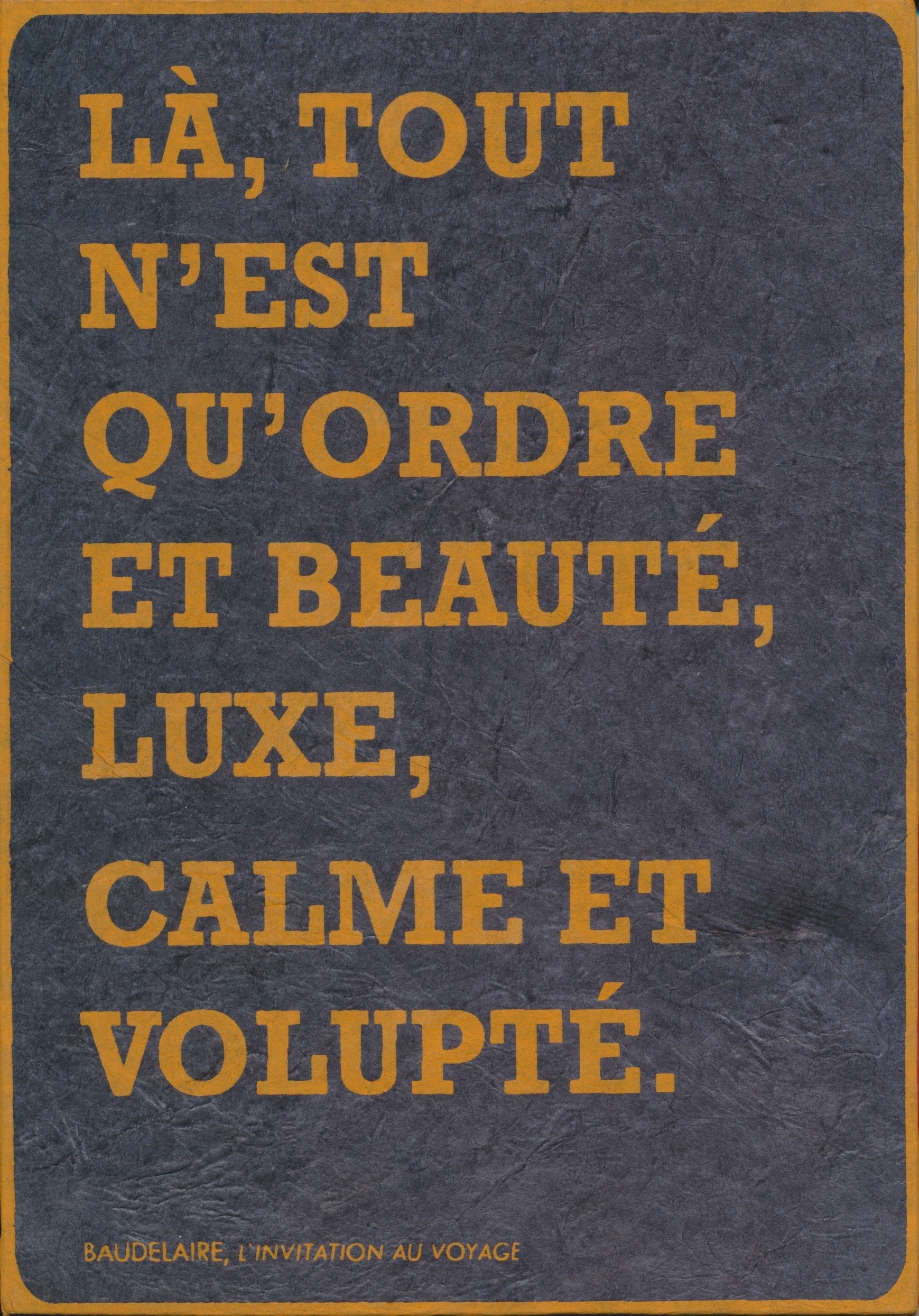 Auf den Vorsatzblättern ist das Gedicht „L’invitation au voyage“ von Baudelaire abgedruckt.