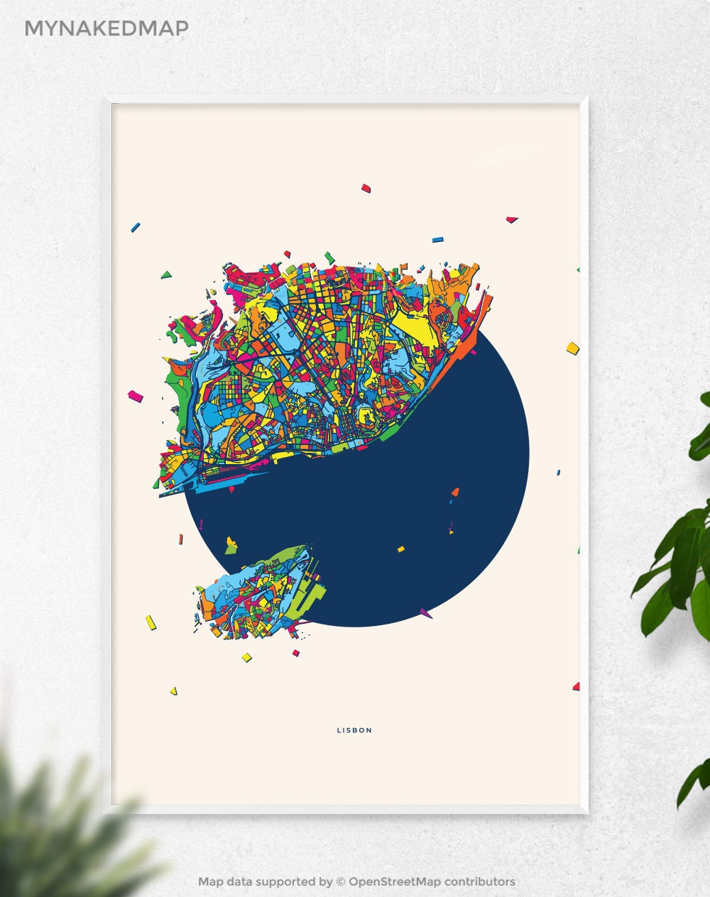 Lisbon Portugal exploding map poster