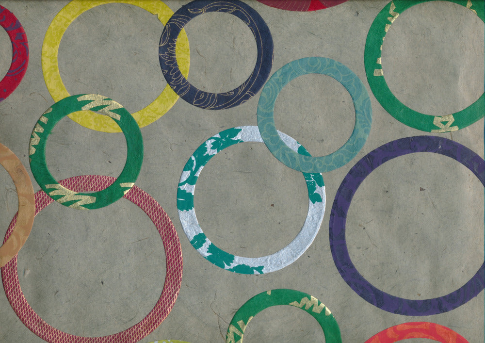Lokta Papier Collage Kreise auf Grau
