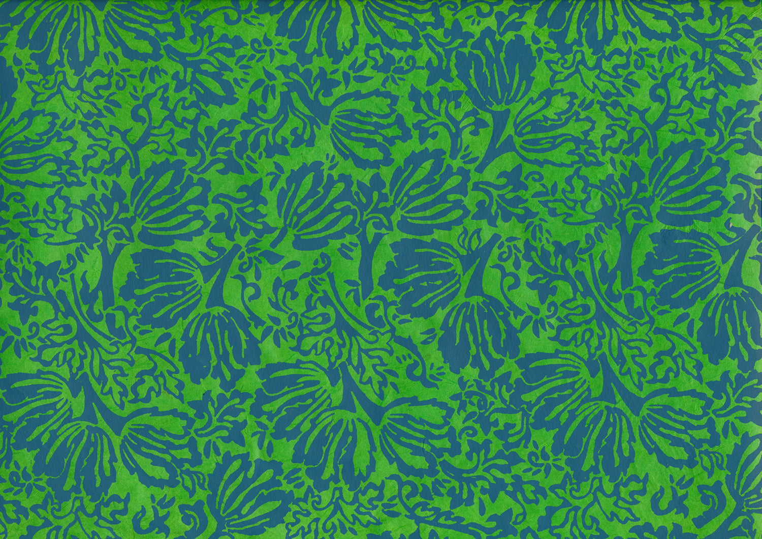 Crafted from the fibers of the lokta plant and block printed by hand, each sheet offers a distinct texture and character. Though structured and sturdy, it often allows light to pass through beautifully.