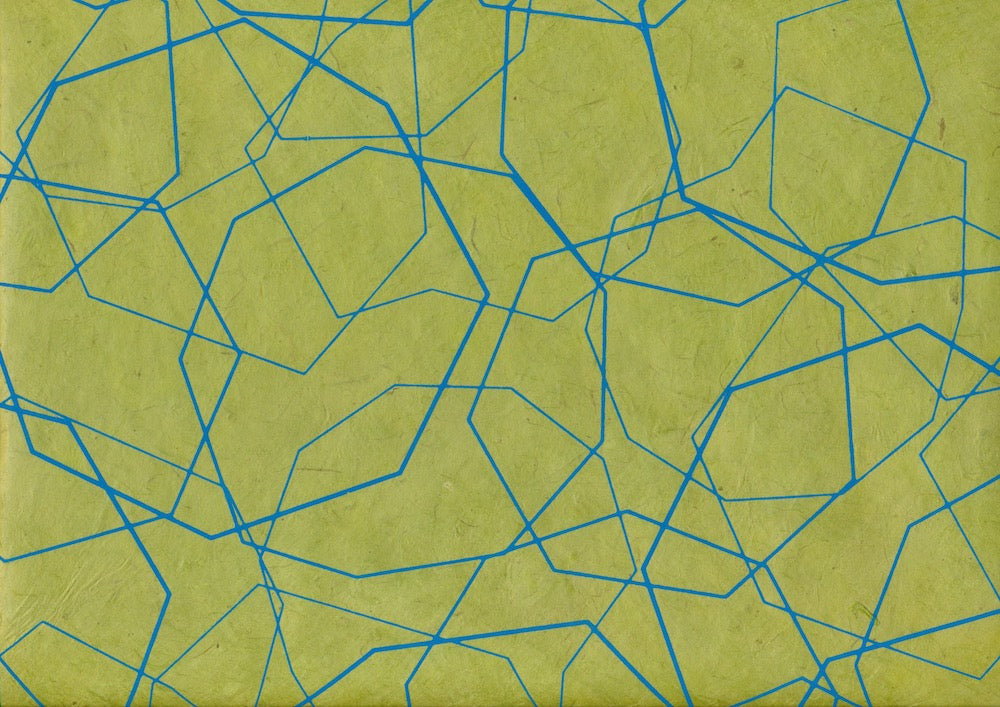 Fabriqué à partir de fibres de plante lokta et imprimé à la main avec des tampons, chaque feuille présente une texture et un caractère uniques. Bien que solide et structurée, elle laisse souvent passer la lumière de manière élégante.
