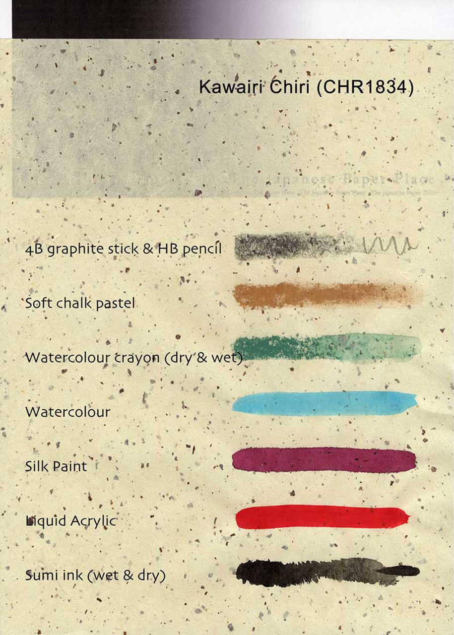 Chiri means 'leftover' and refers to the bits of dark outer bark from the kozo plant that give this paper its distinctive, decorative flecks. The very smooth surface makes this paper good for printmaking or painting with bold designs. Also good for bookbinding and collage.