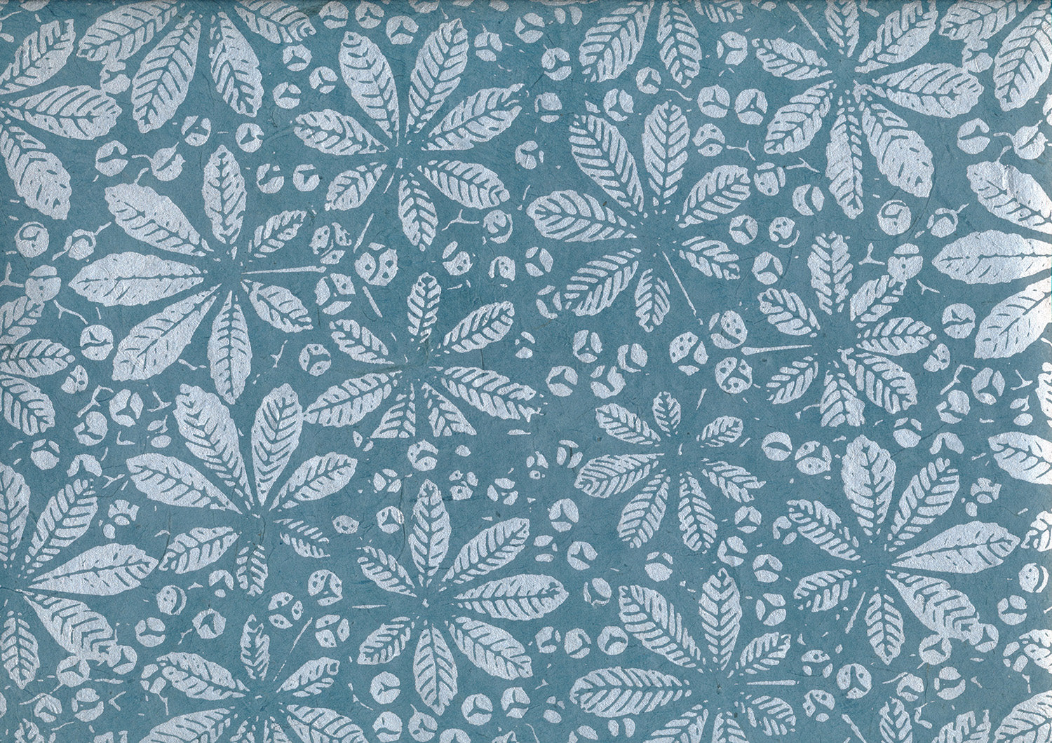 Crafted from the fibers of the lokta plant and block printed by hand, each sheet offers a distinct texture and character. Though structured and sturdy, it often allows light to pass through beautifully.