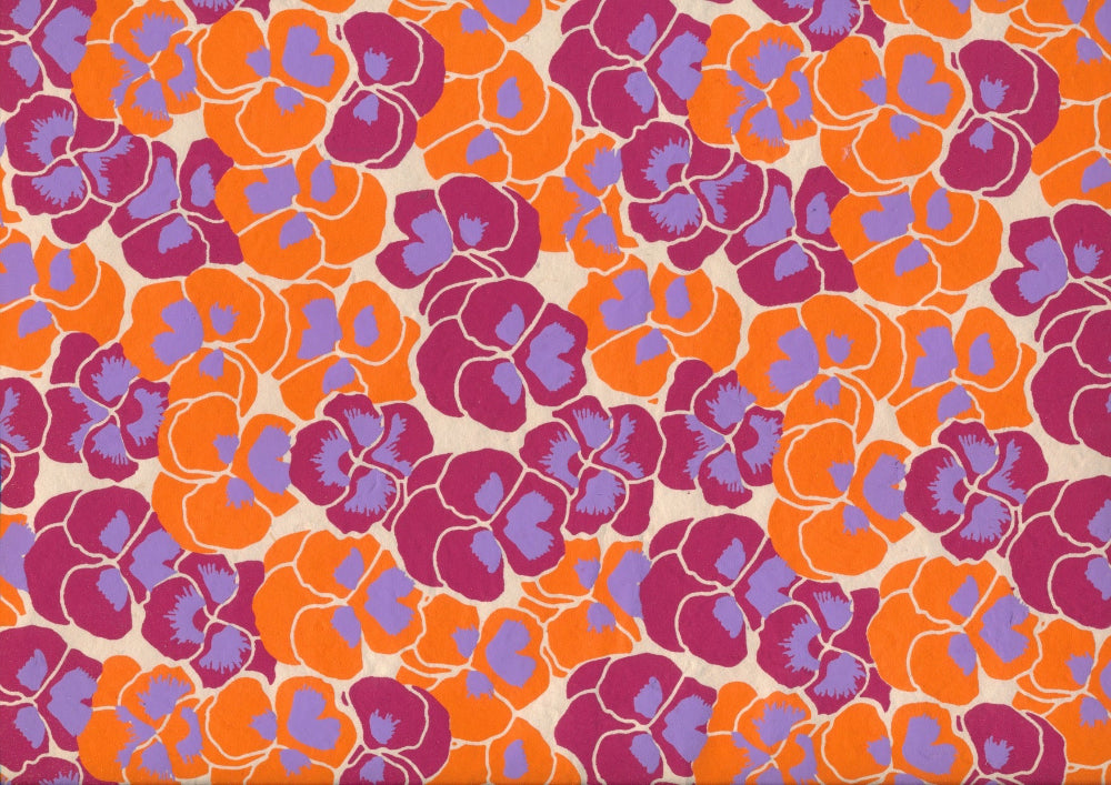 Crafted from the fibers of the lokta plant and block printed by hand, each sheet offers a distinct texture and character. Though structured and sturdy, it often allows light to pass through beautifully.